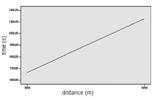 El gráfico 4 permite verificar la Vcrit entre las distancias y tiempos de 3000m y 5000m, mientas en el gráfico 5 no existieron diferencias significativas entre los tiempos alcanzados en estas distancias.